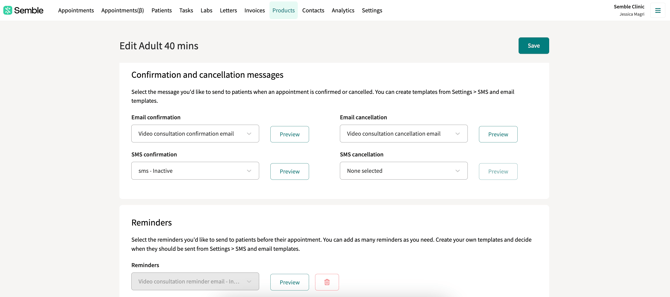 Now, when one of the linked products is booked, the reminder email is sent to the patient with an option to cancel online: