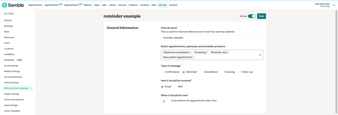 When you now book an appointment with that product, your configured reminders will be automatically sent out to the patient.