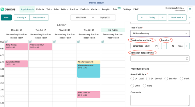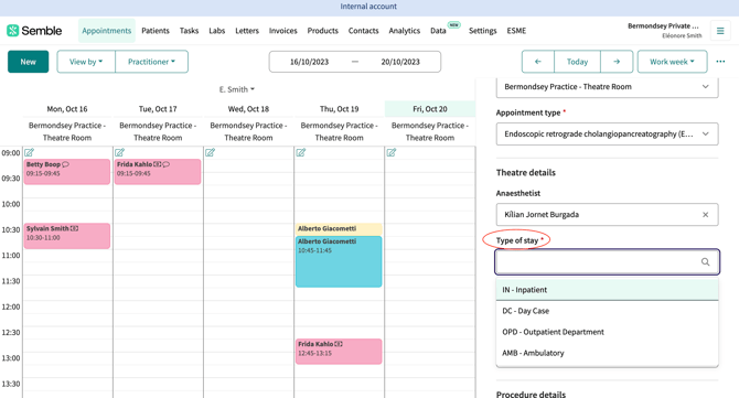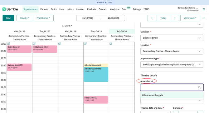 6.Use the following dropdown menus to select the theatre details. Select the anaesthetist.