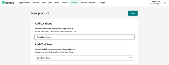 5. From the Add Clinicians drop-down menu, select the relevant clinicians that will provide the product
