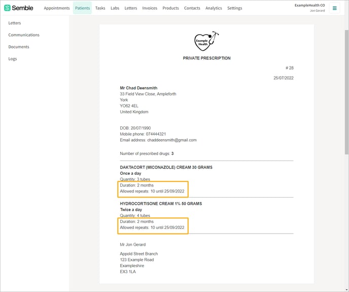 You can go to the Logs tab in the patient record to see details of the submitted prescription as well as any errors which you may have encountered.